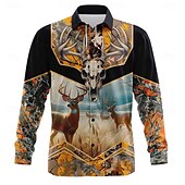 More information about Men's Reindeer Camouflage Cow Print Shirt Button Up Shirt Long Sleeve Vintage Retro Outdoor Camping & Hiking Hunting Spring Fall Turndown 3D Print Linen Like Shirt Black