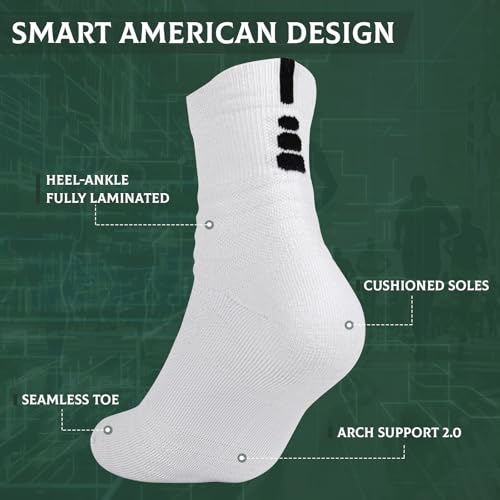 VIDACO 5/10 Pairs Men's Athletic Socks 8-10 Moisture-Wicking Crew Socks Arch Support - Cushioned Towel Foot Running Tennis 5