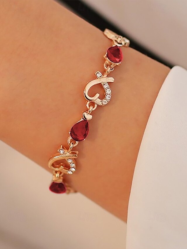 $7.99 - Women's Gold Bracelet with Red Teardrop Crystals and Heart-Shaped Accents, Elegant Romantic Design for Valentine's Day Gift, Weddings, and Special Occasions 2025. Shop for cheap Women's Bracelet online? Buy at lightinthebox.com on sale today!