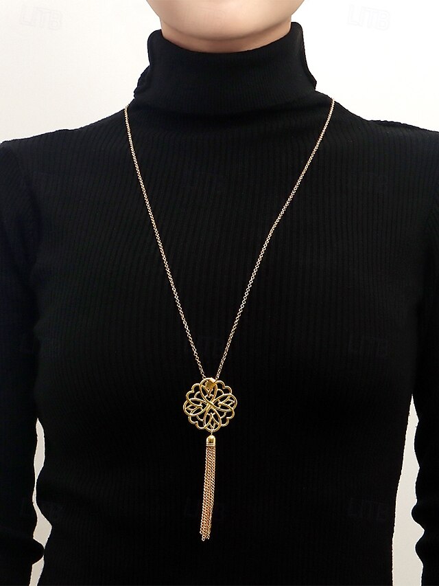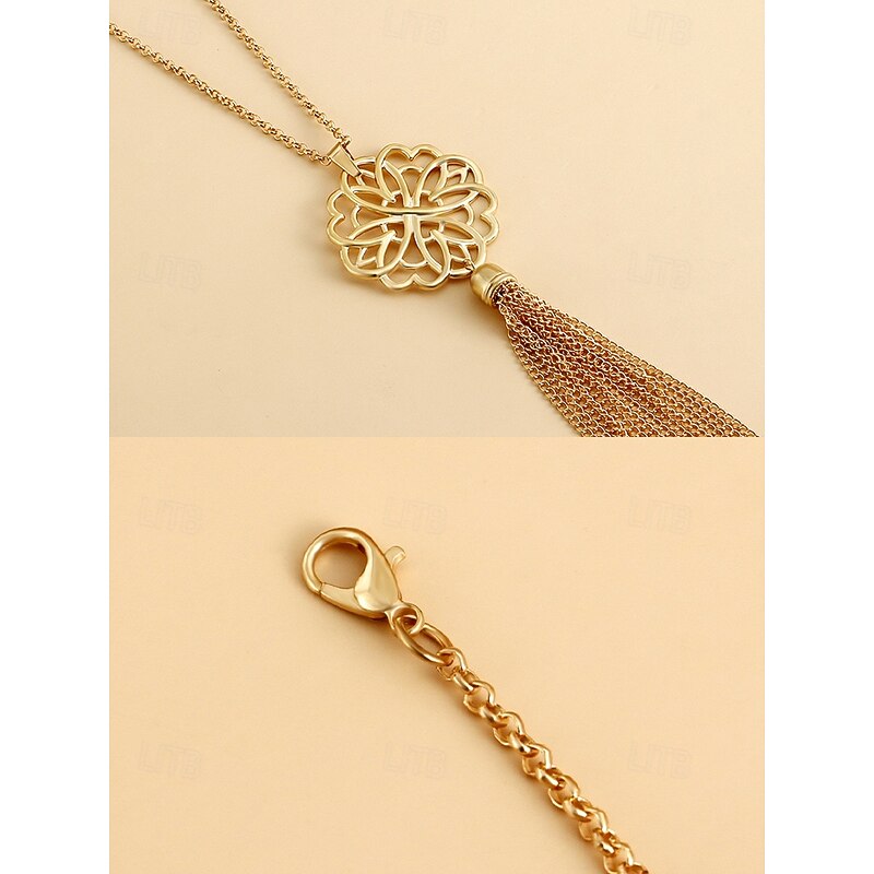 $9.99 - Women's Gold Long Pendant Necklace with Intricate Floral Design and Tassel Accent - Elegant Statement Jewelry for Casual and Formal Outfits 2025. Shop for cheap Women's Necklace online? Buy at lightinthebox.com on sale today!