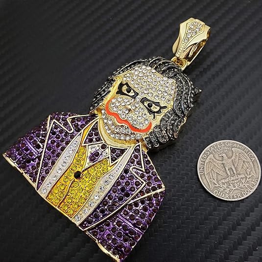 More information about Iced Gold Silver Plated Large Joker Cubic Zirconia Bling Pendant 16" ~ 30" Cuban Chain Hip Hop Style Jewelry Necklace Gift for Men, Women