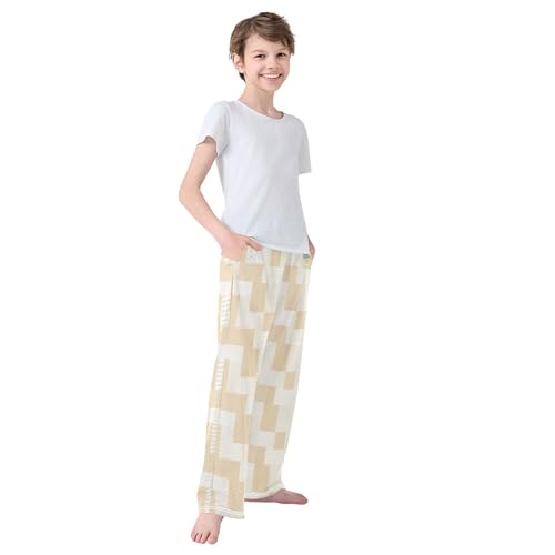 Boho Bohemian Geometric Long Pajama Pants Elastic Waist PJ Bottoms with Pockets S A113186