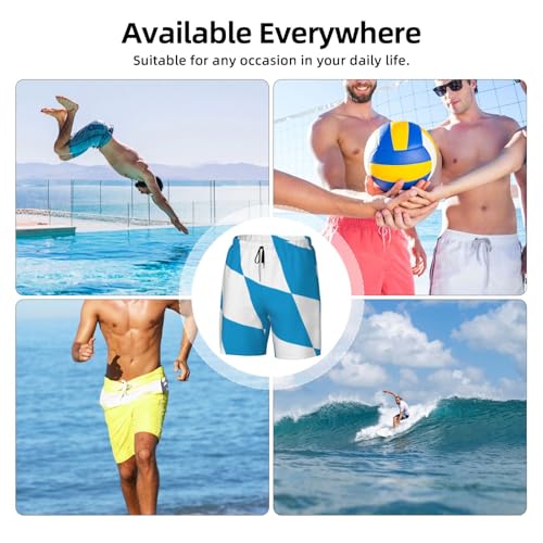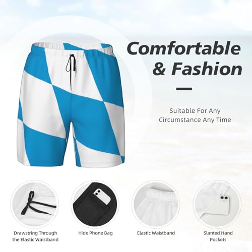 HOT ! Bavarian Flag Print Men's Casual Swim Shorts, Comfortable Double Layer Beach Trunks for Lounging & Swimming
