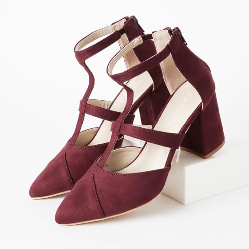 More information about J. Adams Michelle Women's Chunky Block Heel Pointed Toe T-Strap Dress Shoes - Elegant Suede Pumps for Office & Party
