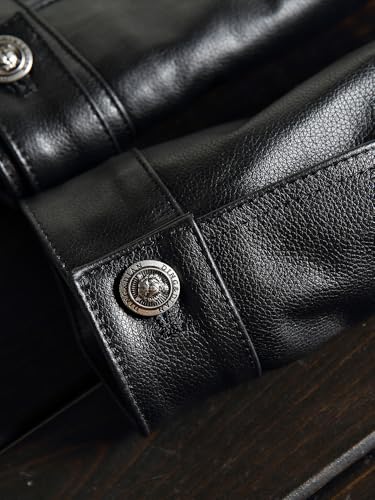 • **Premium Quality**: This Men's Black Genuine Cowhide Leather jacket is crafted from high-quality, durable cowhide leather, ensuring longevity and resistance to wear while providing exceptional comfort.