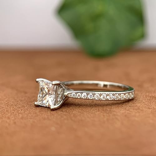 Moissanite Rings 1 Carat Princess Cut Moissanite Ring D Color VVS1 Solitaire Moissanite Engagement Rings for Women 7
