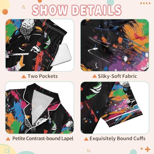 ALAZA Ice Hockey Player on Black Satin Pajamas Set Short Sleeve Button Down Sleepwear Summer Pjs 2 Piece 7