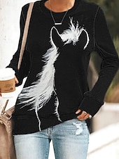 More information about Women's Sweatshirts Graphic Animal Vintage Casual Long Sleeve Crew Neck Regular Tops Street Dailywear Casual Print Black Blue Spring Fall Winter