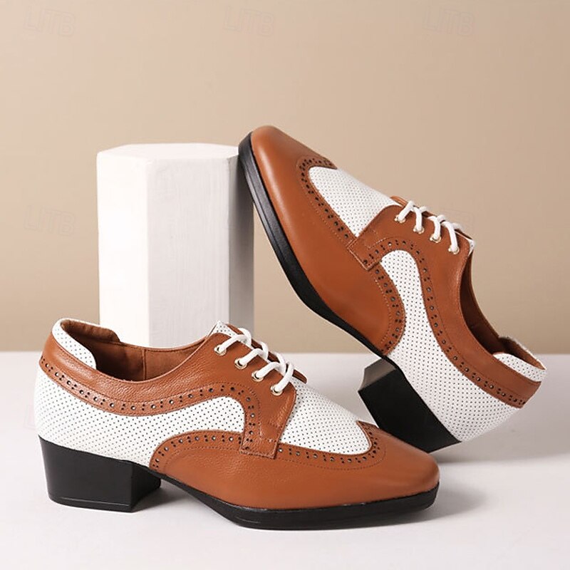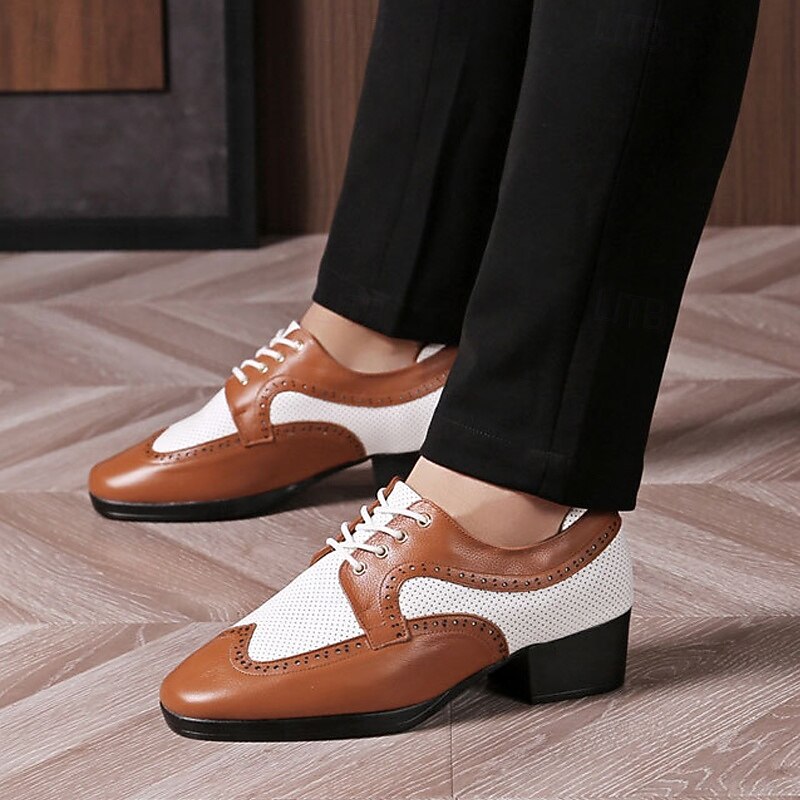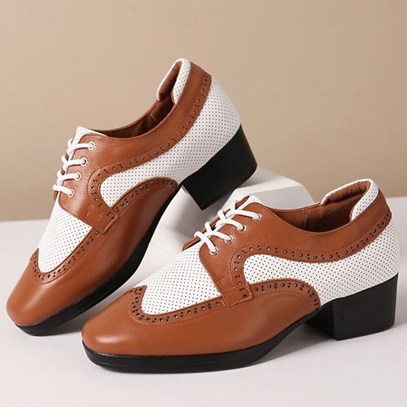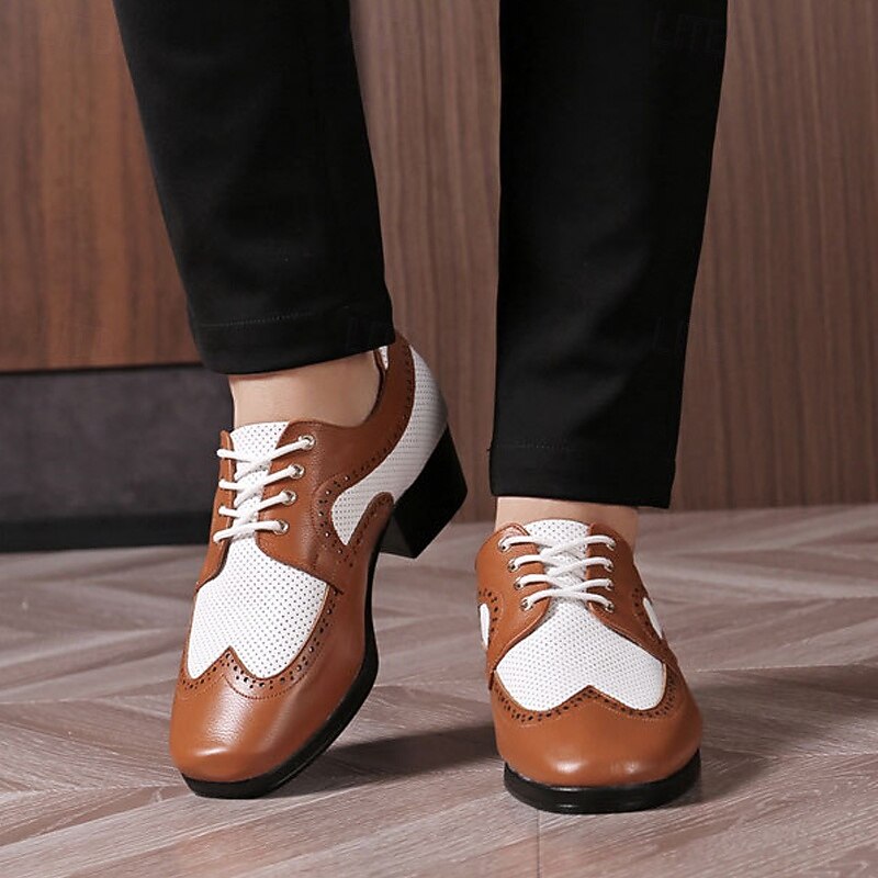 $59.99 - Men's Brown and White Faux Leather Dance Shoes – Classic Lace-Up Oxford Design with Perforated Detailing for Ballroom and Latin Dancing 2025. Shop for cheap Men's Dance Shoes online? Buy at lightinthebox.com on sale today!