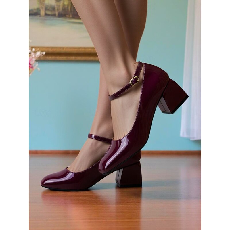 Women's Shiny Purple Patent Leather Mary Jane Heels – 1950s Retro Block Heel Pumps with Ankle Strap for Vintage Party, Wedding, and Prom 31