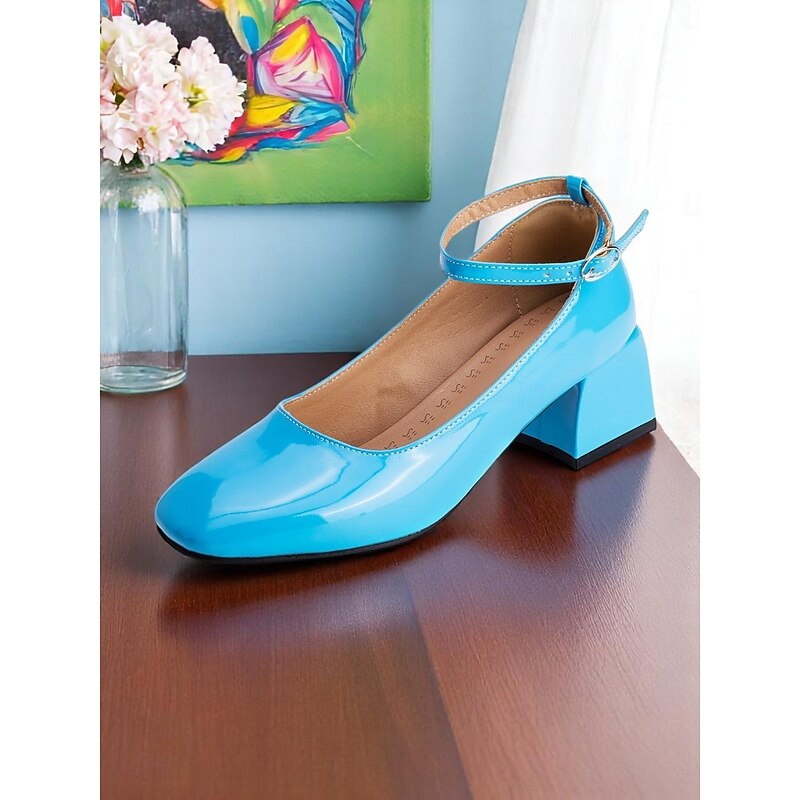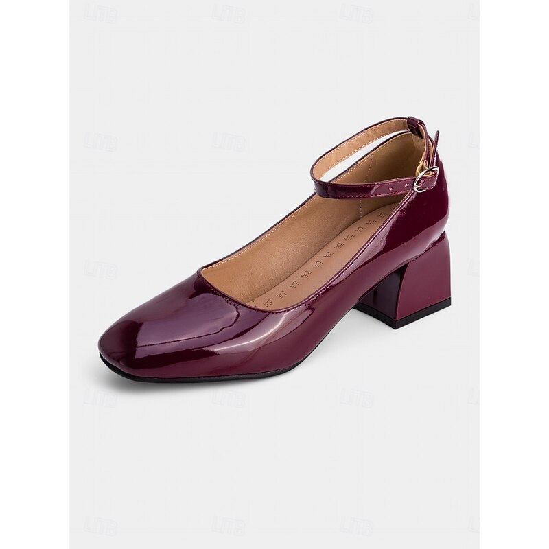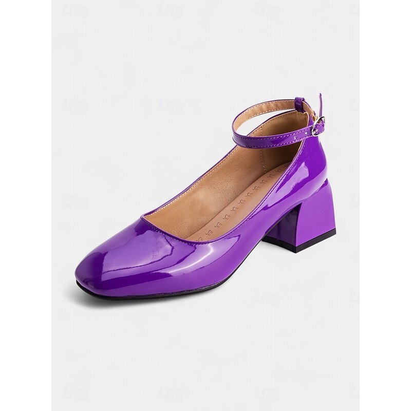 Women's Shiny Purple Patent Leather Mary Jane Heels – 1950s Retro Block Heel Pumps with Ankle Strap for Vintage Party, Wedding, and Prom 37