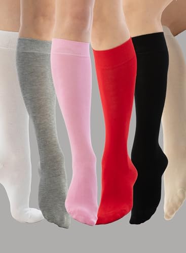 Women's Cotton Knee High Socks, Long Tube Dress Socks | Soft, Lightweight & Stretchy | Shoe Size: 5-8/8-11, 3 Pairs 6