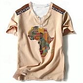 HOT ! Independence Day Map Of Africa Mens Graphic Shirt Tribal Prints Designer Classic Casual 3D Tee Henley Vintage Outdoor Daily Vacation Light Brown Blue African Cotton