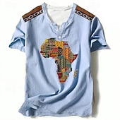 More information about Independence Day Map Of Africa Mens Graphic Shirt Tribal Prints Designer Classic Casual 3D Tee Henley Vintage Outdoor Daily Vacation Light Brown Blue African Cotton
