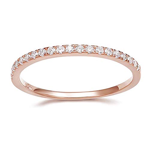 More information about Greendou Fashion Jewelry 2mm 925 Sterling Silver Wedding Band Cubic Zirconia Half Eternity Stackable Engagement Ring Size 5-10 (8, Rose Gold)