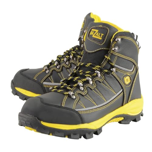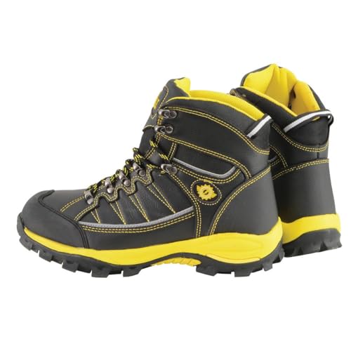 Bazalt MBM9122 Men's Black with Yellow Water and Frost Proof Leather Outdoor Lace-Up Boots - 10 7