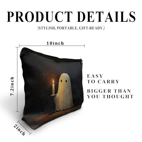 HOT ! Halloween Spooky Ghost Holding Candle Makeup Bag,Vintage Halloween Ghost Cosmetic Bags Gifts for Women, Horror Spooky Makeup Zipper Pouch for Travel Gift