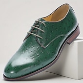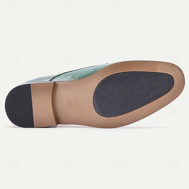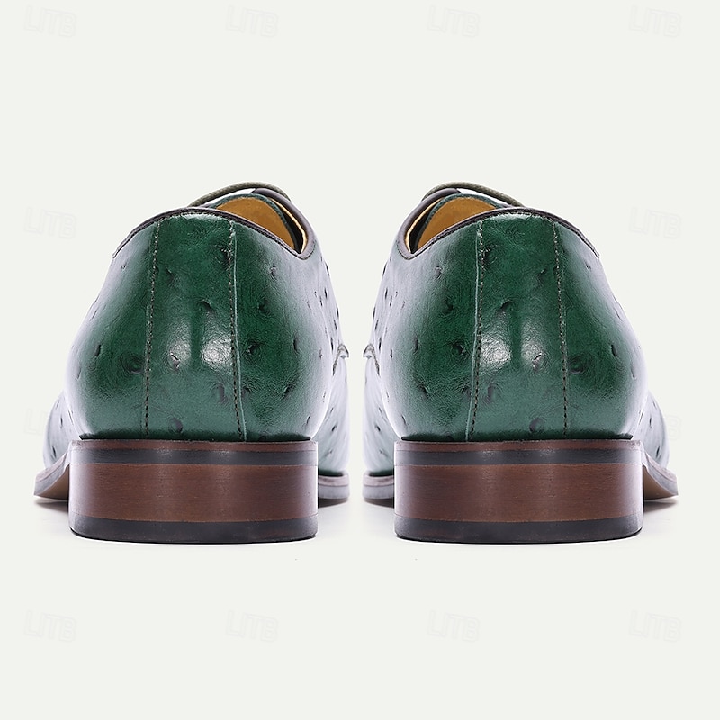 More information about Men's Green Genuine Leather Ostrich Pattern Oxford Shoes with Lace-Up Closure, Elegant Handmade Dress Shoes for Formal Events and Business Occasions