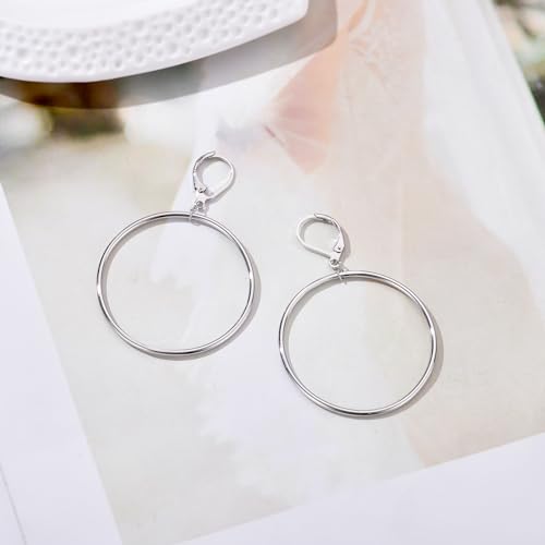 Silver Large Big Round Circle Hoop Dangle Drop Earrings for Women Hypoallergenic 40 50 60 70MM 6