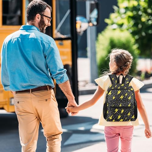 Lightning Bolts Black Preschool Backpack Yellow School Backpack Daycare Bookbag for Kids 3-8 3