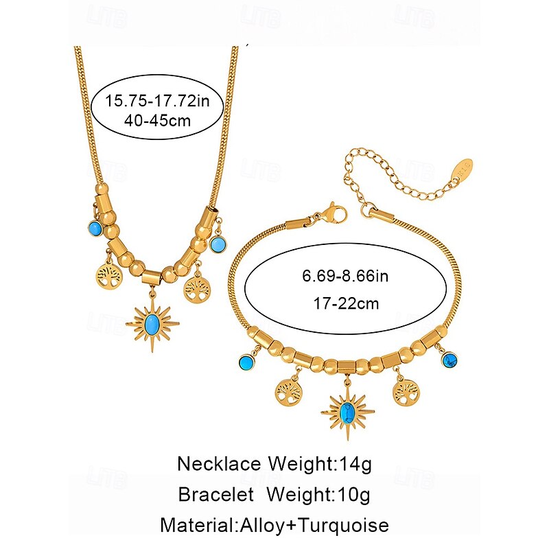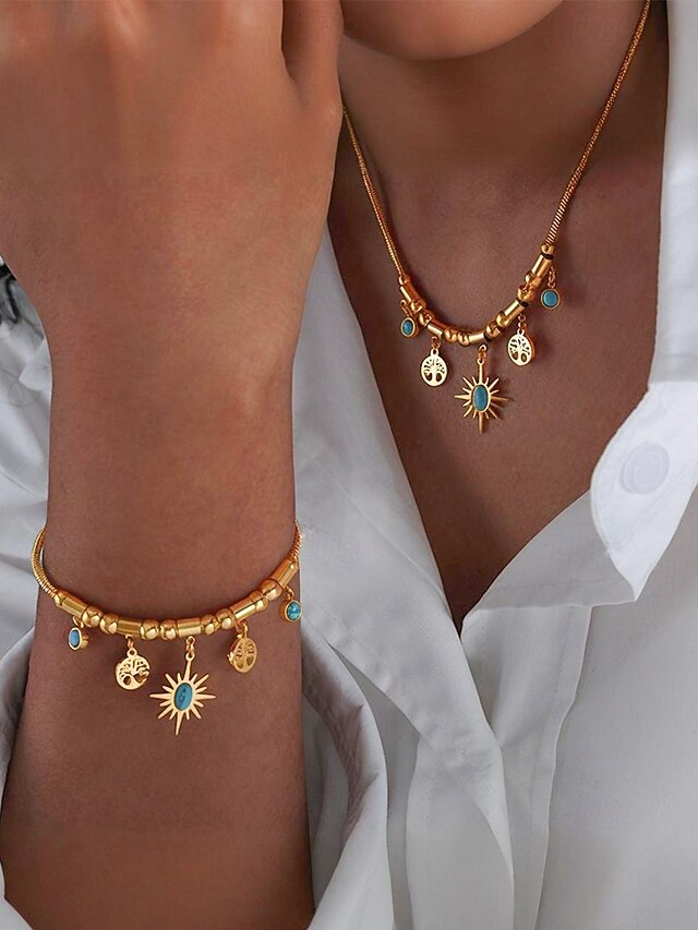 $11.99 - Women's Gold Alloy Necklace and Bracelet Set with Turquoise Sun and Tree Charms – Boho Chic Jewelry for Parties, Holidays and Casual Wear 2025. Shop for cheap Women's Necklace online? Buy at lightinthebox.com on sale today!