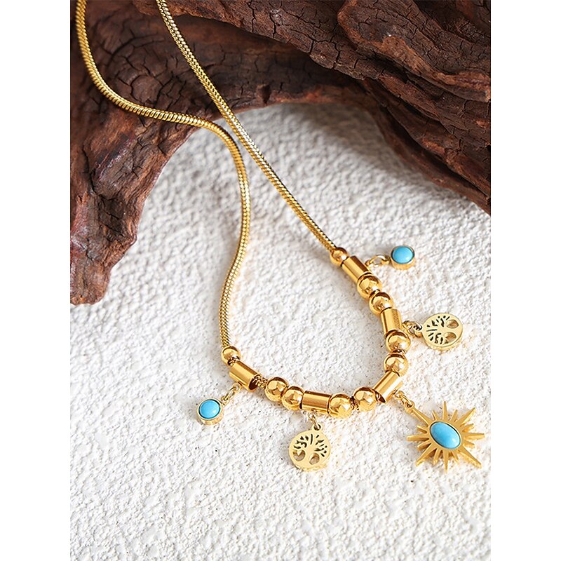 Women's Gold Alloy Necklace and Bracelet Set with Turquoise Sun and Tree Charms – Boho Chic Jewelry for Parties, Holidays and Casual Wear 1