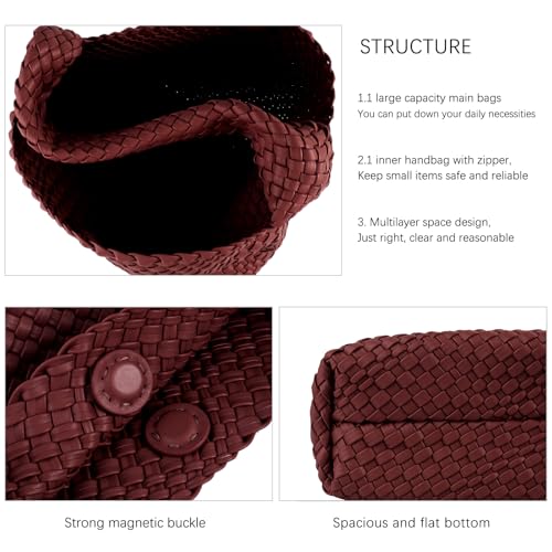 Woven Tote Bag For Women,Vegan Leather Hand Woven Handbags And Purse,Shoulder Bag Top-Handle Bag All-Match Underarm Bag 5
