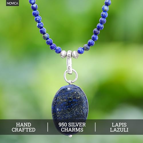 HOT ! NOVICA Artisan Handcrafted Lapis Lazuli Pendant Necklace | Handmade Crystal Pendant Necklace | Adjustable .925 Sterling Silver Necklace | Artisan Necklace Pendant | Blue Lady Themed Necklace Thailand