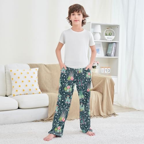 HOT ! ZZXXB Succulent Cactus and Geometry Boys Long Pants Soft Trousers Elastic Waist Kids Lounge Bottoms with Pockets S-XL