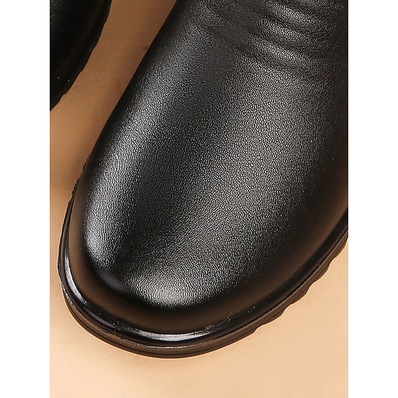 Highlights [Fabric] : Crafted from high-quality microbial leather, these women's ankle boots offer a sleek and timeless appearance suitable for fall and winter. The faux fur lining is plush and soft, ensuring warmth and comfort during colder months. [Fit] : Featuring a flat heel design with a subtle platform height of 1.18 inches, these boots provide excellent support and cushioning for all-day wear, without compromising on style or elegance. [Design Highlights] : These boots come with a decorative side buckle and strap detail, enhancing their visual appeal. The round toe adds a touch of minimalism, while the fleece lining provides extra warmth. A zipper closure ensures easy on and off. [Occasions] : Ideal for both work and semi-formal settings, these boots are perfect for office wear or business casual events. Their classic and comfortable design makes them suitable for a variety of autumn and winter occasions. [Size Range] : Available in sizes ranging from US5.5 to US10, making them suitable for a wide range of foot sizes. Perfect for everyday use. superior materials and excellent craftsmanship ensure long-lasting durability.