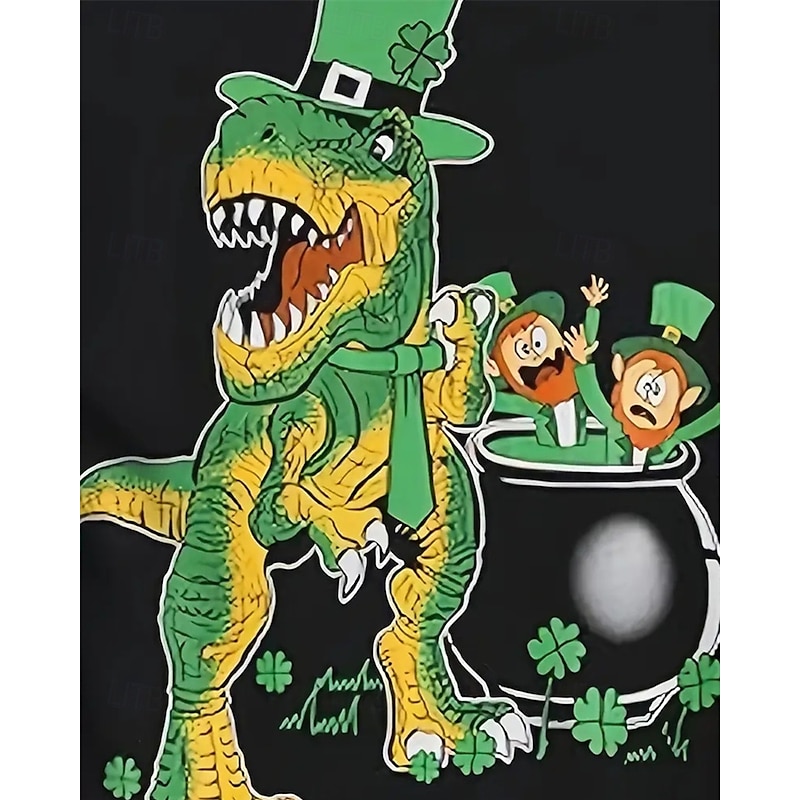 HOT ! St. Patrick Boys 3D Graphic Dinosaur T shirt Tee Short Sleeve Summer Spring Fashion Basic Kids 4-12 Years Crew Neck Outdoor Casual Daily Regular Fit