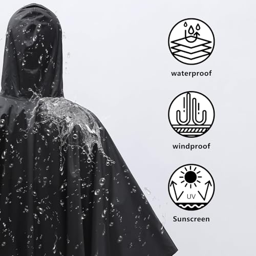 • Versatility :Discover the ultimate 3-in-1 multifunctional rain poncho, perfect for rainy weather and doubling as a tent tarpaulin, picnic mat, or sun protection. Ideal for hiking, camping, fishing, and other outdoor activities, this waterproof rain coats is a must-have. Whether you need a reusable rain poncho, a poncho rain, or an emergency rain poncho, it fits all needs. Plus, it's great for travel, making it the plus size rain coat and a versatile travel raincoat for adults.