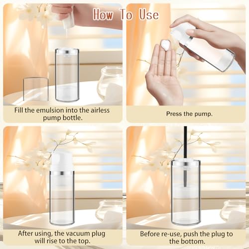 • 【Large Size】Featuring a large diameter design, these airless pump bottles are easy to fill and clean. Blank bottle body, allowing you to customize and identify your travel pump bottles quickly.