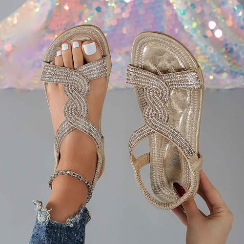 Women's Flat Sandals Breathable Comfortable Slip On Summer Beach Shoes Dressy Casual Lightweight Elastic Strap 5