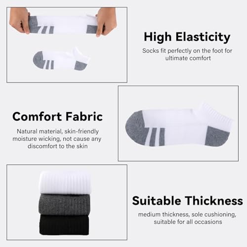 • [VERSATILE LOW CUT SOCKS]: Our low cut ankle socks are good matching for all of your favorite athletic shoes, casual shoes, sports shoes and workout shoes. These ankle socks for men with the right thickness for all seasons.