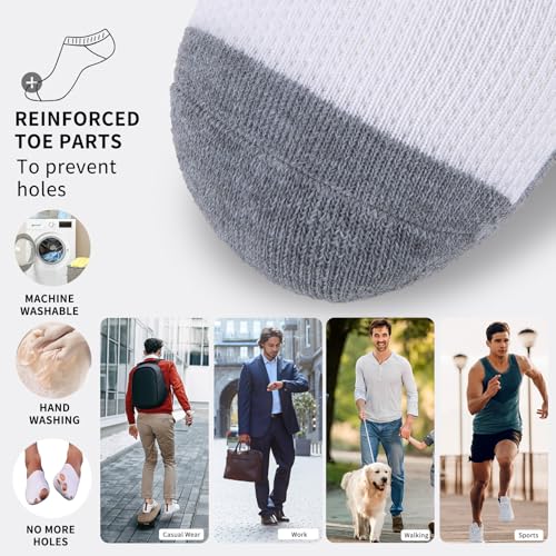 • [COMFORT CUSHION SOCKS]: Our ankle socks men use soft cushion on bottom to reduce impact and provide protection from blisters during sports and walking. Cushion with moisture wicking can absorb sweat. These athletic socks men fit US men’s shoe size 6-12, mens socks size 10-13.