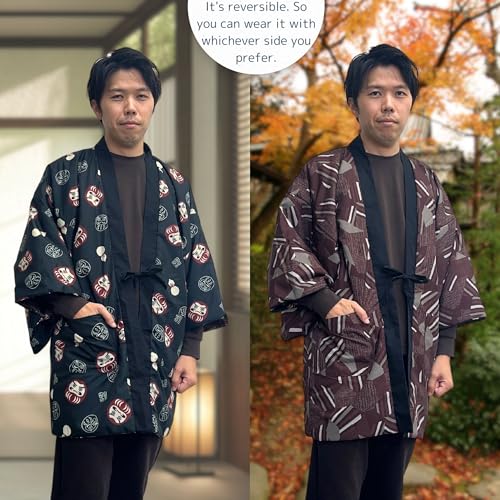 HOT ! Edoten Japanese pattern Hanten Reversible Hand-wash is no problem Polyester Men's One-size-fits-all