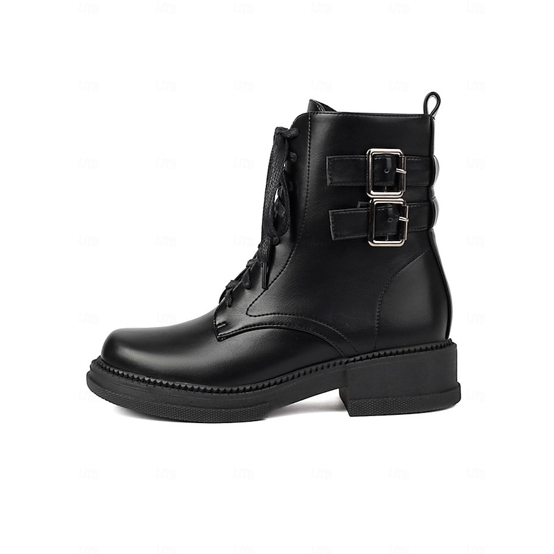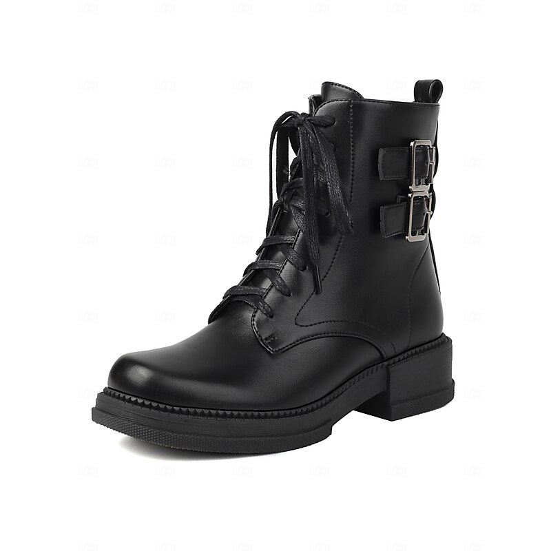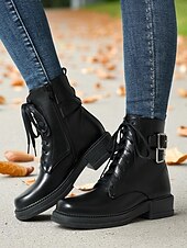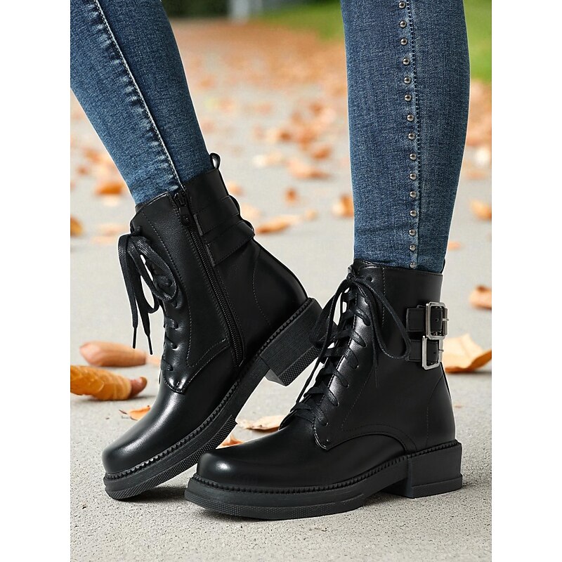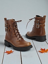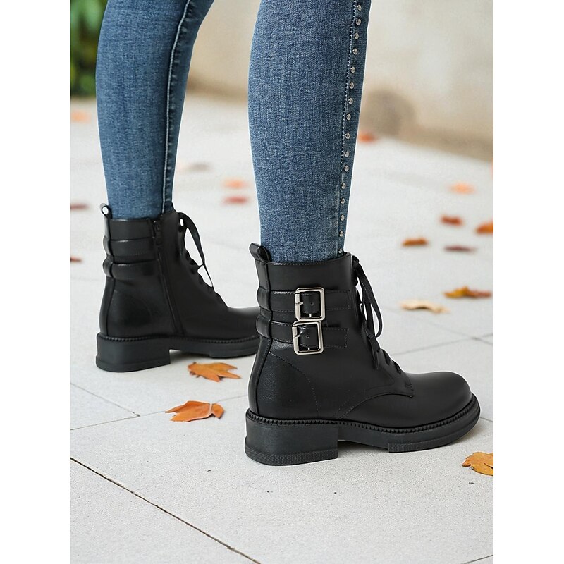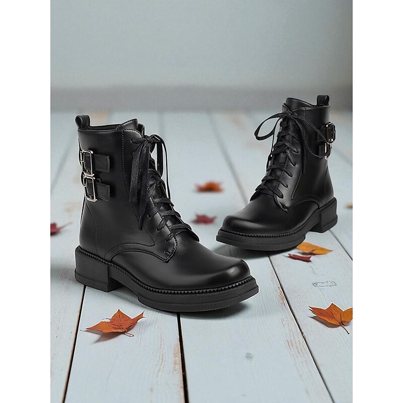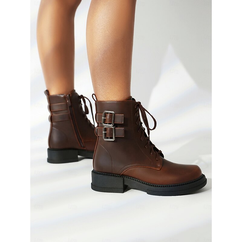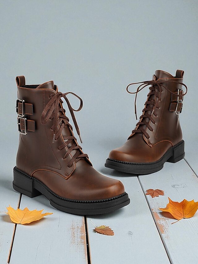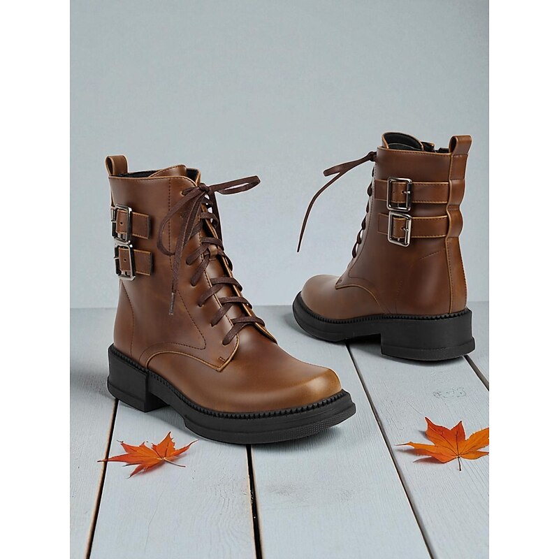 More information about Women's Boots Work Boots Daily Booties Ankle Boots Buckle Low Heel Round Toe Classic Casual Industrial Style Microbial Leather Zipper Lace-up Light Brown Dark Brown Black