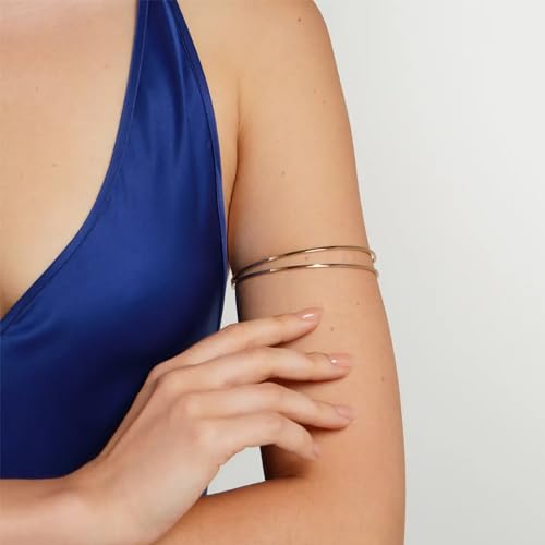 • CUFF BRACELETS FOR WOMEN: Arm cuff jewelry for women is made of high quality brass, free of lead and nickel, harmless to your body. The arm bangle is sturdy, gold-plated and polished for a shiny look. Upper arm cuff jewelry adopts open design, easily to bend to fit your arms, suitable for most women. Importantly, upper arm cuff gold won't turn your arm green