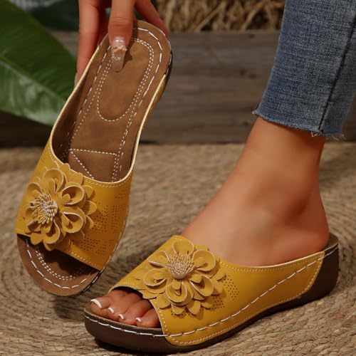 Comfortable Non-Slip Solid Color Open-Toe Wedge Sandals for Women, PU Leather Slip-On Platform Breathable Slides 6