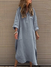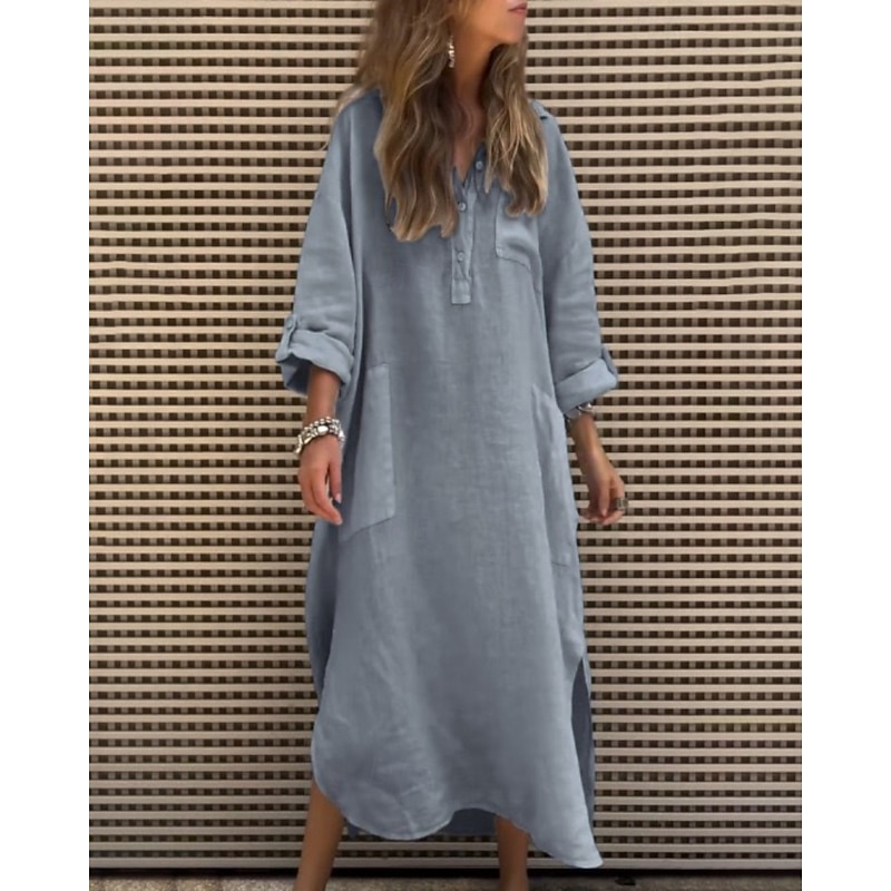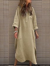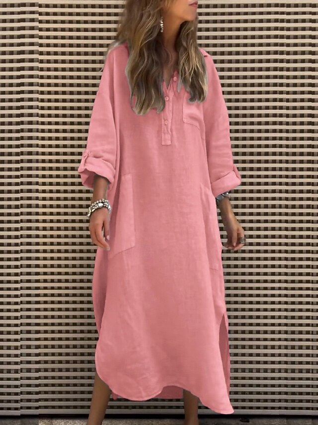 More information about Women's Midi Dress Shirt Dress Classic Modern Outdoor Vacation Holiday Regular Fit Plain Long Sleeve V Neck Pink Purple Khaki Gray Summer