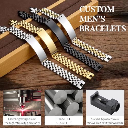 Personalized ID Bracelet for Men– Custom Laser Engraving on Both Sides, Waterproof Stainless Steel, Adjustable Fit, 4 Color Options 5