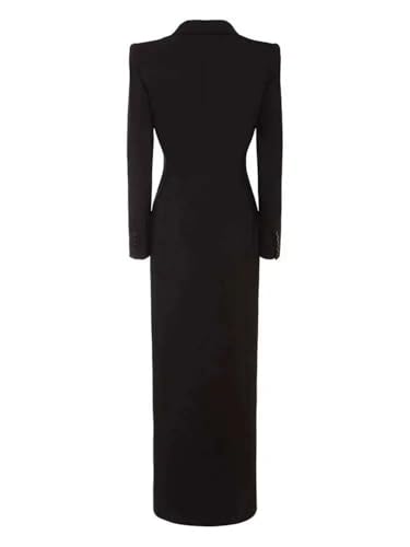 Women Black Single Buttons X-Long Elegant Blazer Lapel Long Sleeve Jacket 5