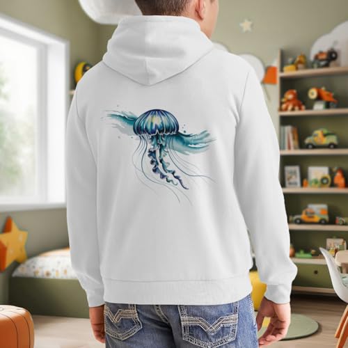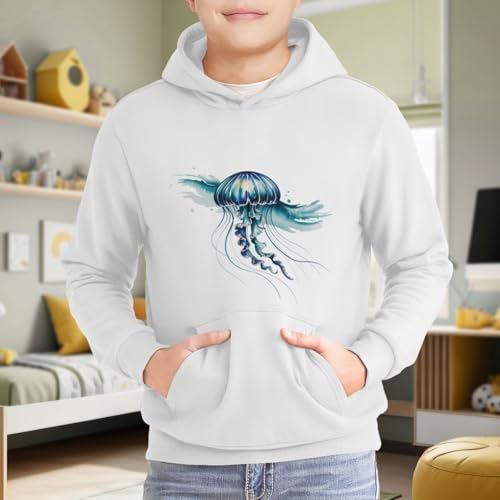 Kids Watercolor Jellyfish Boys Girls Lightweight Kangaroo Pocket Fleece Hoodies 6