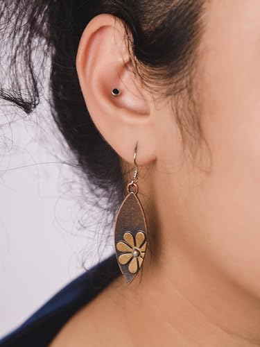 • VINTAGE FLORAL CHARM: These earrings showcase a simple yet charming flower design set against a rustic, elliptical backdrop, evoking a sense of vintage nostalgia and bohemian style.