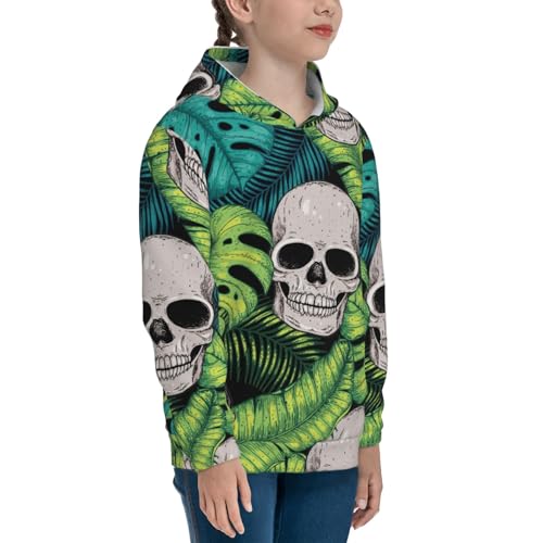 Skull and Palm Leaves Kid Hoodies Boys Sweatshirts Girls Pullover with Pocket 4