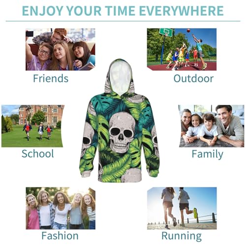 Skull and Palm Leaves Kid Hoodies Boys Sweatshirts Girls Pullover with Pocket 5