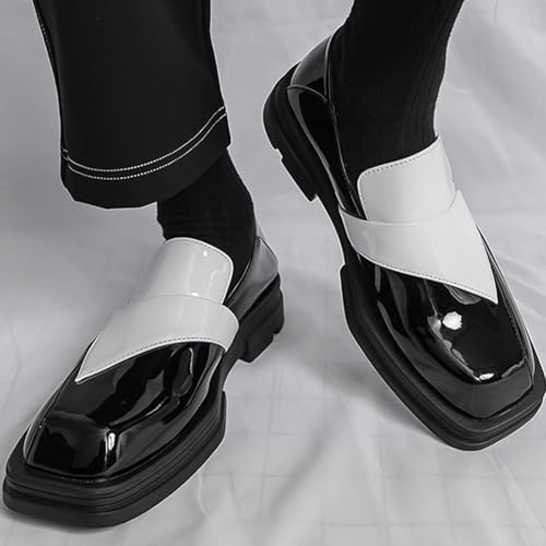 Men's Square Toe Platform Dress Loafers Fashion Patent Leather Slip on Business Work Office Formal Shoes Daily Non-Slip Low Block Heel Casual Shoes 6