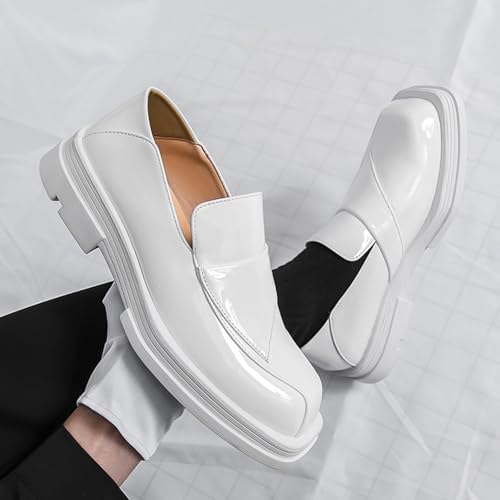 Men's Square Toe Platform Dress Loafers Fashion Patent Leather Slip on Business Work Office Formal Shoes Daily Non-Slip Low Block Heel Casual Shoes 7