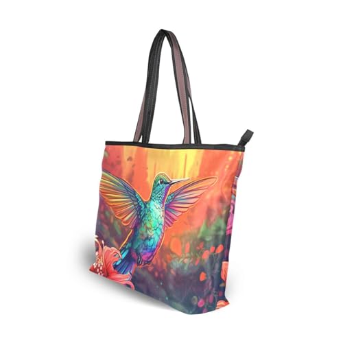 More information about Vivid Hummingbird Tote Bag Zipper Shoulder Bag Reusable Grocery Bag Handbag - Large